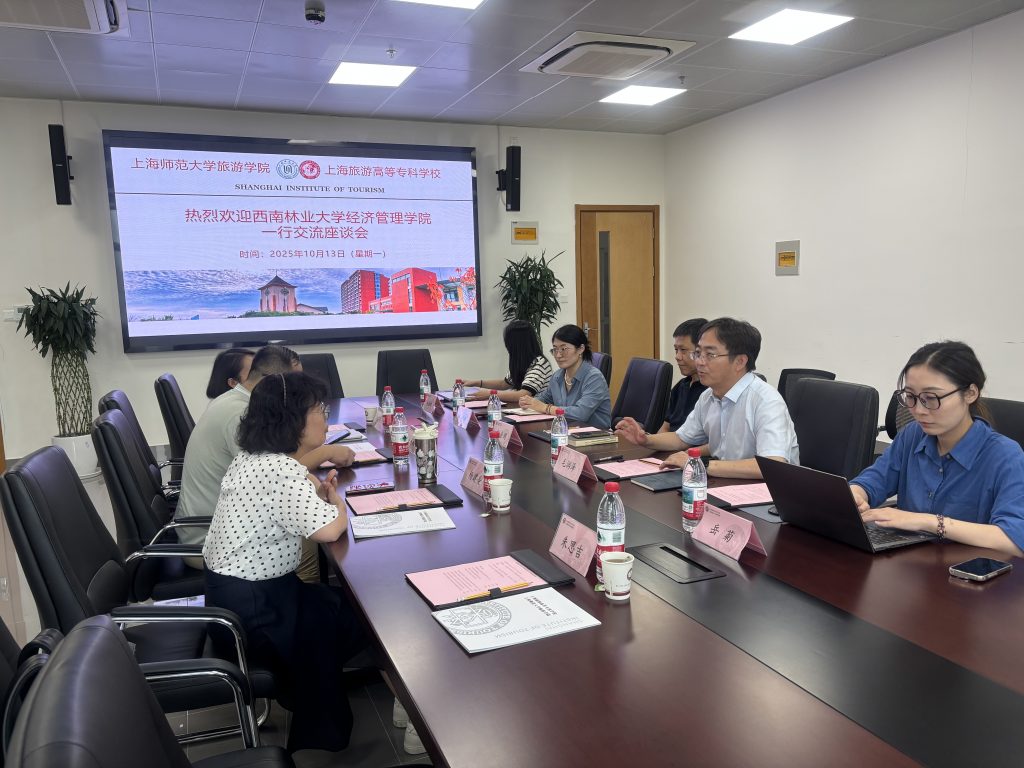 为学习国内先进院校旅游专业的建设经验,切实推动公司旅游管理专业的高质量发展,2025年10月13-14日,公司旅游系系主任杨茜好、“3+2”高本贯通项目负责人杨建美、学科办主任匡英鹏及青年教师朱思吉一行4人赴上海师范大学旅游公司进行交流座谈。上海师范大学旅游公司毛润泽经理、赵宝国书记、办公室主任张利平、教师代表岳菊及马怡玲参与交流座谈。