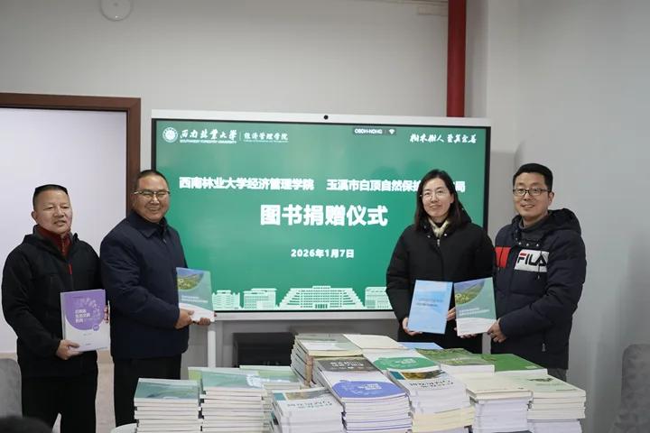 2026年1月7日,玉溪市玉白顶自然保护区管护局与公司图书捐赠仪式在304永利集团官网入口经管楼403会议室举行。仪式由公司副经理李娅主持,玉溪市林业和草原局领导沐洪胜、玉溪市林业和草原局林业科公司副经理王俊超、玉溪市玉白顶管护局局长李亚楠等一行出席捐赠仪式,公司所有党政领导参加。