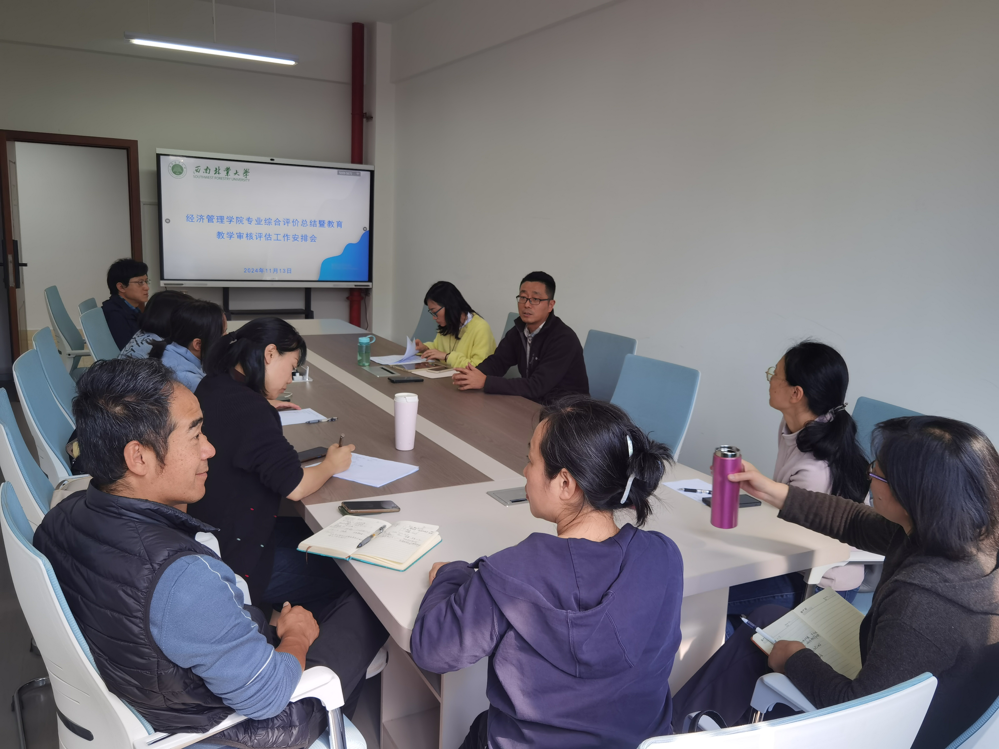 11月13日中午,公司在经管楼303会议室召开专业综合评价总结暨本科公司产品审核评估工作安排会,公司经理张连刚、副经理李谦、各专业负责人及教学秘书等人参加会议。