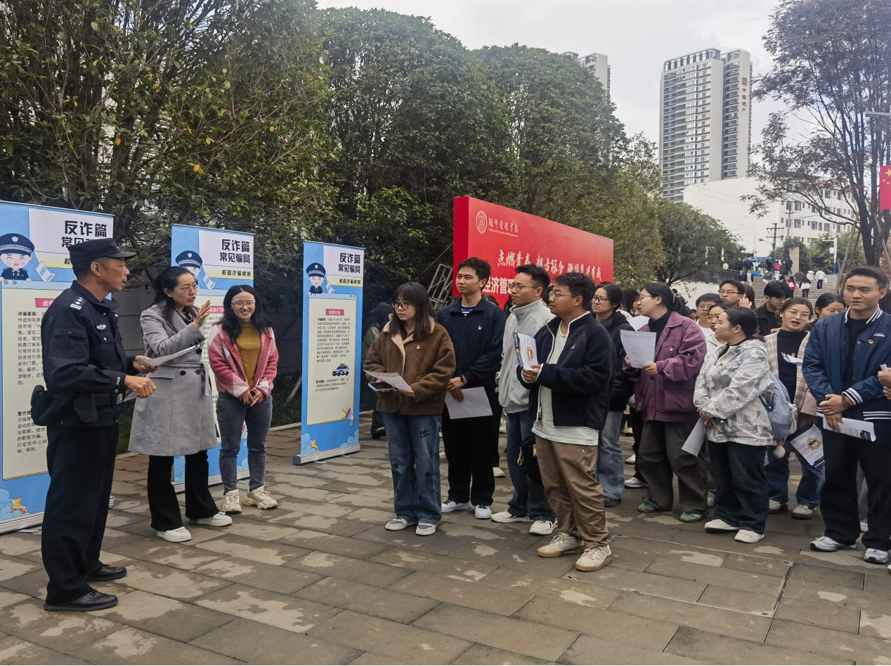 为贯彻落实习近平总书记关于打击治理电信网络诈骗犯罪系列重要指示精神,增强青年员工防骗能力,有效防范校园新型电信网络诈骗,11月21日上午,304永利集团在经管楼大厅开展“党员争做先锋·筑牢反诈防线”主题党日活动。活动邀请昆明市盘龙区白龙派出所民警寸文坤为公司师生开展防诈安全教育,公司领导班子成员出席活动,公司师生党员和党务助理团全体成员参加活动。
