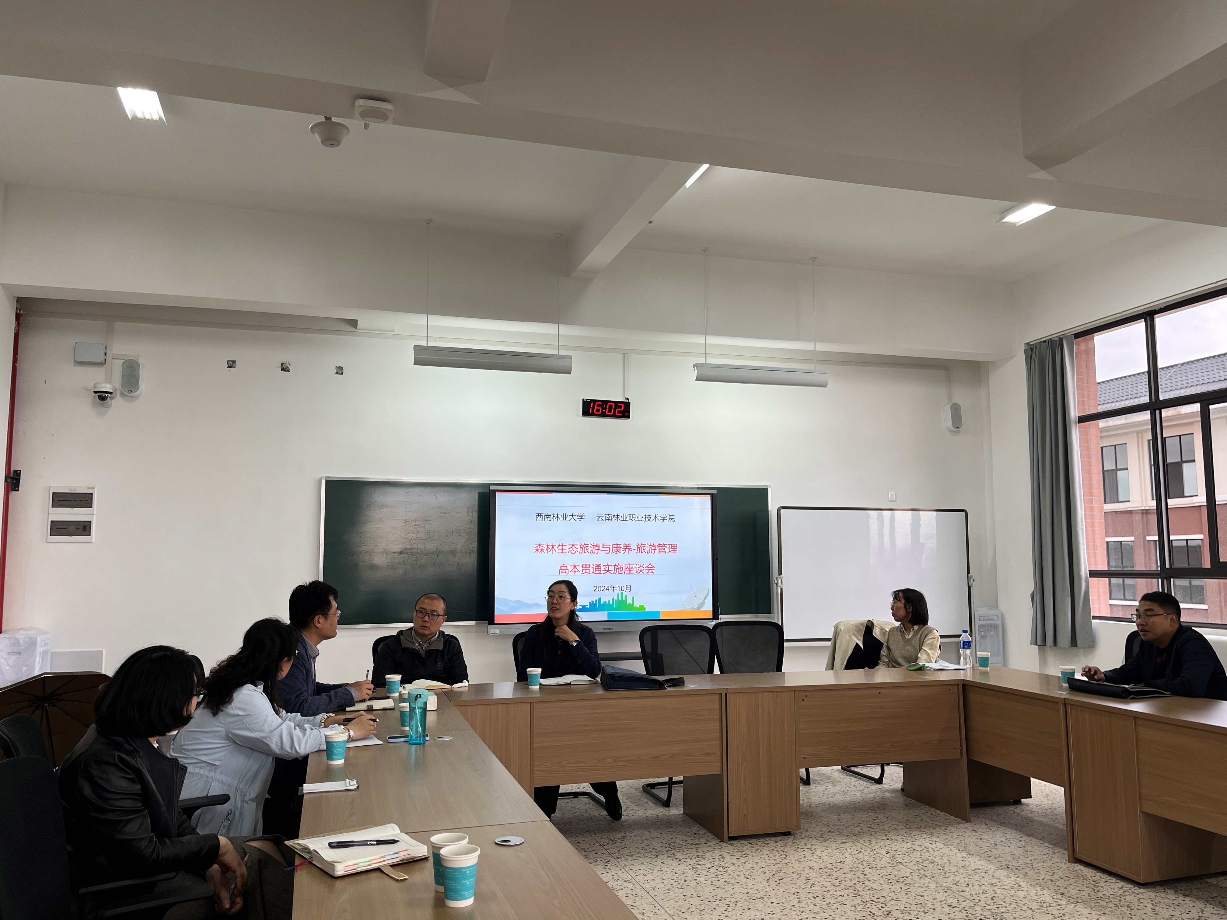 座谈会结束后,两院领导班子继续就合作方向和具体计划进行了深入交流。双方表示,将聚焦旅游管理和森林生态旅游与康养等专业的人才需求,培养适应经济社会需求的高素质应用型人才。此外,双方还就党群共建、技能竞赛、课程共建、团队共育、科研共建、团学活动等方面开展深度融合合作进行了研讨。