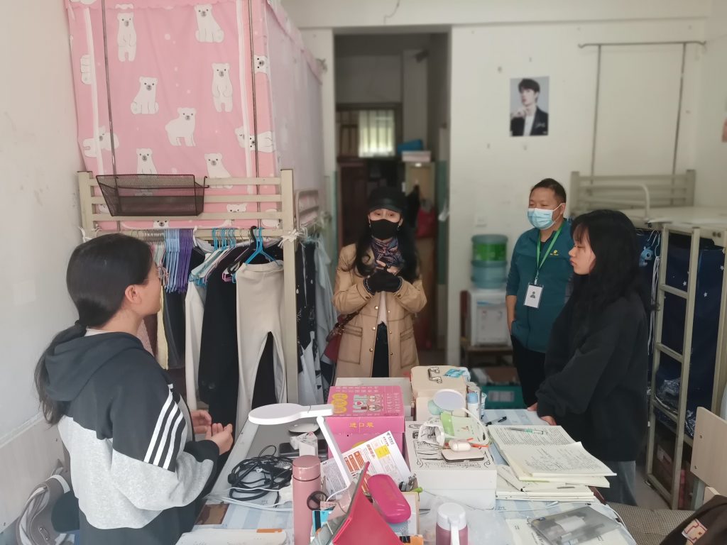 为落实公司 3 月 10 日疫情防控专项工作会议的有关部署,深入了解员工宿舍生活情况,提高员工疫情防控意识,经济管理公司党委书记胡晓、党委副书记刘俊伟、班主任朱发亮、张琴霞、辅导员唐文军、李芸典、朱财华一行于2022年3月11日走访员工宿舍。