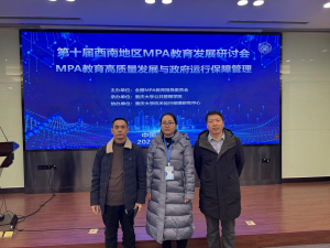12月23日,公司304永利集团副经理兼MPA教育中心主任邹再进、MPA教育中心副主任刘会柏以及研究生教学秘书张琴霞一行三人到重庆大学参加了第十届西南地区MPA教育发展研讨会。