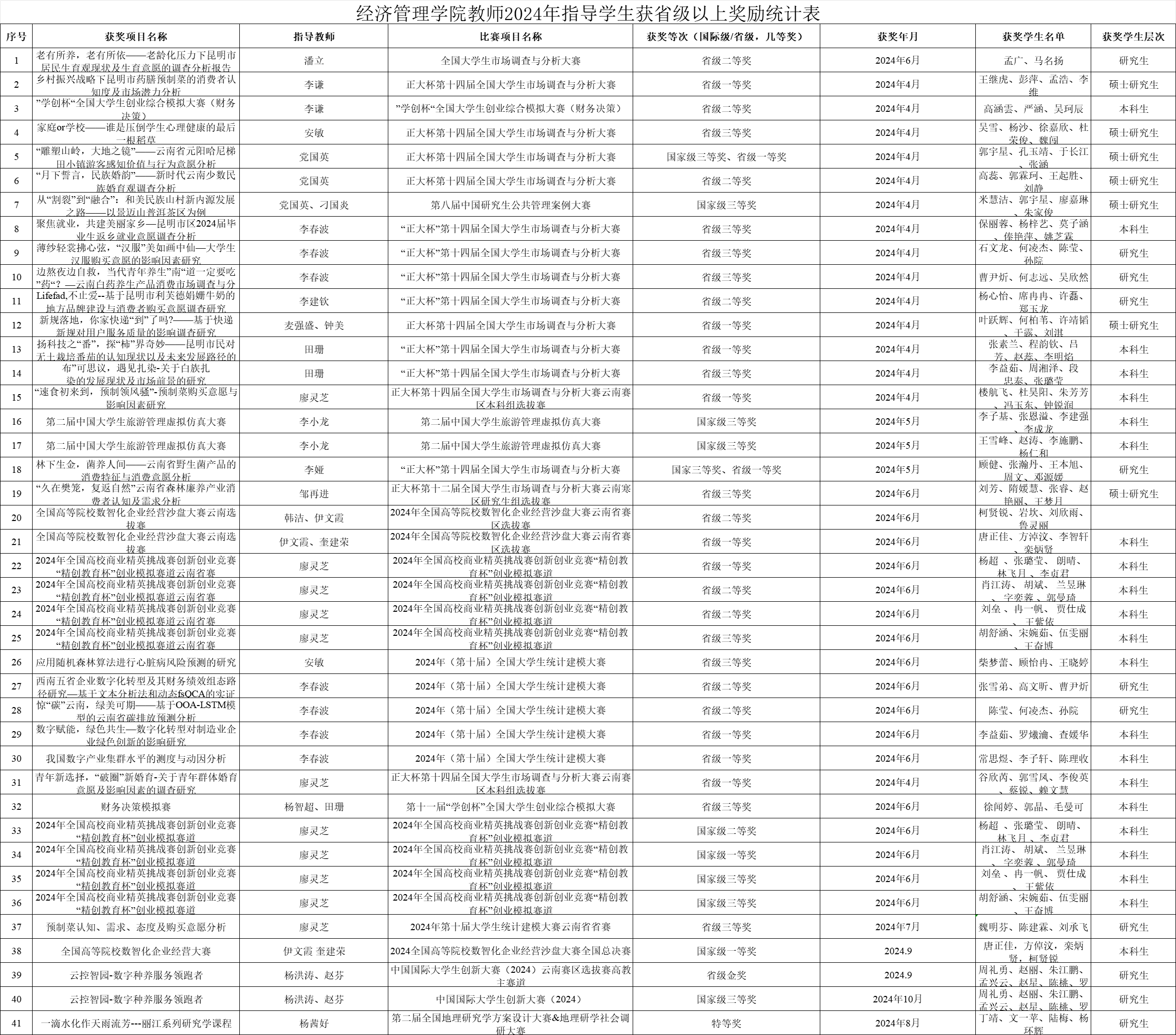 304永利集团教师2024年指导员工获省级以上奖励统计表