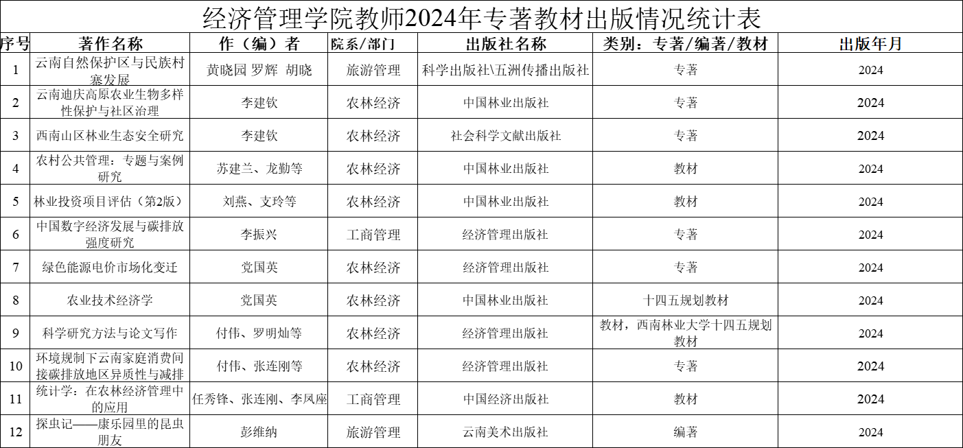 304永利集团教师2024年专著教材出版情况统计表